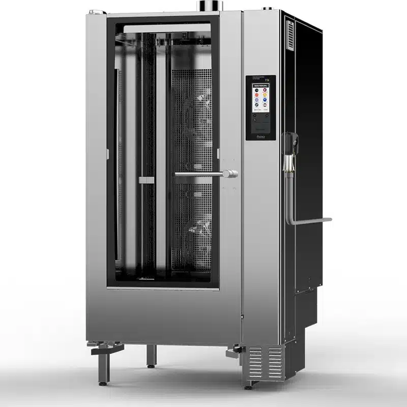 Forno combinado inteligente a gás de 40 Gns modelo TSiG40 da Prática. Com cocção automática e inteligente, os fornos combinados TSi (Technicook System intelligent) preparam diversos pratos ao mesmo tempo de forma simples e intuitiva.