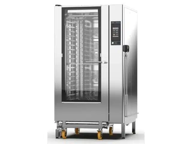 – Qualidade: Proteínas com mais peso, suculência e no ponto desejado, sem usar papel alumínio. Frituras e grelhados feitos com menos óleo e de forma segura e padronizada. Legumes cozidos mantendo coloração e nutrientes. Arroz – – Produtividade: 72 frangos inteiros, 80 quilos de arroz cru, 180 quilos de cenouras no vapor, 280 bifes à parmegiana, 80 pudins grandes ou 480 mini-pudins.