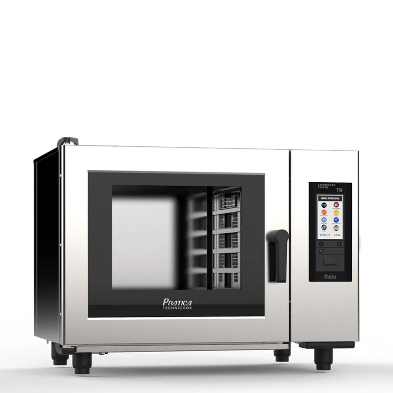 Forno combinado inteligente elétrico de 6 Gns modelo TSi6 da Prática. Com cocção automática e inteligente, os fornos combinados TSi (Technicook System intelligent) preparam diversos pratos ao mesmo tempo de forma simples e intuitiva.
