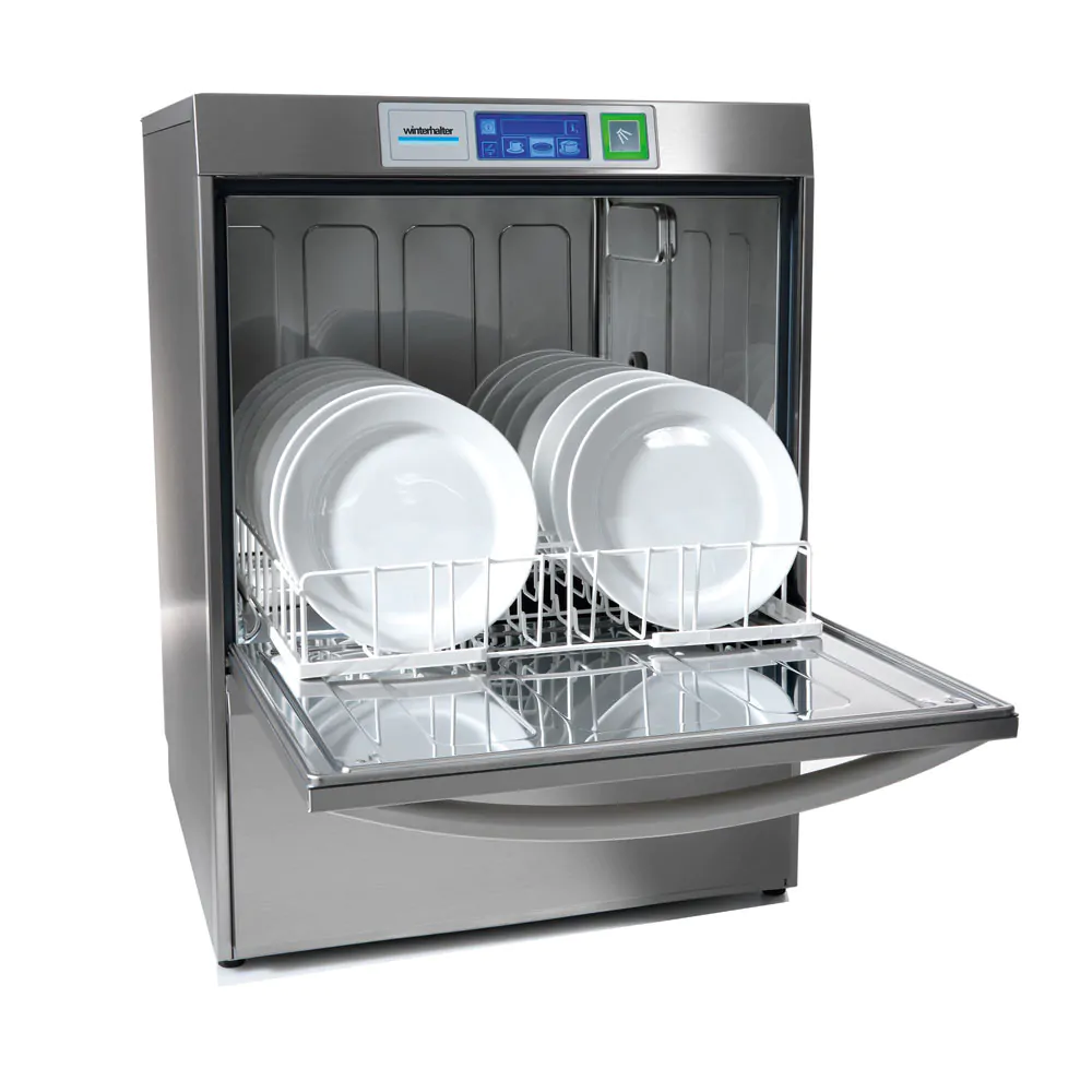Sistema quádruplo de lavagem: as máquinas Winterhalter são as únicas do mercado que possuem 4 filtros, garantindo que a água fique mais limpa e por mais tempo. Sensor de turvação: o sensor identifica quando a água de lavagem está muito suja, e informa no display da máquina a necessidade de troca. Sem necessidade de repasse e polimento: com as lava-louças da série UC você elimina o trabalho de polir e repassar as taças, talheres e louças. Limpeza e higiene perfeitas: limpeza perfeita, higiene completa, itens visivelmente impecáveis. A UC garante resultados de limpeza perfeitos por um longo período de tempo, para atender aos mais elevados padrões de limpeza, higiene, qualidade e confiabilidade. Operação intuitiva: Display touchscreen inteligente que mostra o programa selecionado e o progresso do ciclo, operação com botão único, puxador ergonômico, e com uma limpeza especialmente fácil: os braços de lavagem podem ser facilmente retirados pressionando-se apenas um botão, sem a necessidade de ferramentas. A operação da UC é fácil e intuitiva, como deve ser . Conceito de máquina flexível: O conceito base da UC foi mantido durante anos e fez da série um sucesso: uma máquina tecnológica para diversas aplicações. Você recebe a UC perfeitamente personalizada para as suas necessidades específicas: como máquina para copos, louça, talheres ou bistrô. Até três programas padrão permitem adaptar a lavagem à forma, ao tamanho e ao grau de sujeira das louças. E se a sua aplicação preferida mudar, o técnico Winterhalter pode facilmente reconfigurar a máquina. Assim há sempre flexibilidade para as suas demandas. Variopower: Toda UC possui de fábrica o exclusivo regulador de pressão de água: o »VarioPower« permite ajustar com precisão a pressão da água especificamente para cada tipo de louça e nível de sujidade. Copos finos e taças frágeis são lavados com pressão reduzida, enquanto a louça mais robusta é lavada com mais pressão. Desta forma, é possível eliminar a sujidade de forma confiável e proteger a louça ao mesmo tempo.